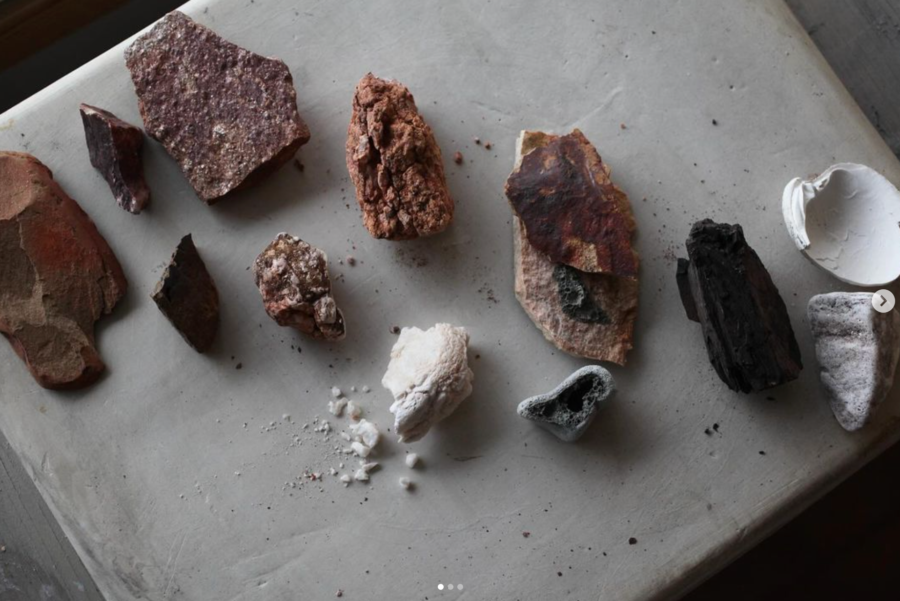 Vi sanker rå mineraler fra nærområdet og forsker på mulighetene som ligger i materialet.